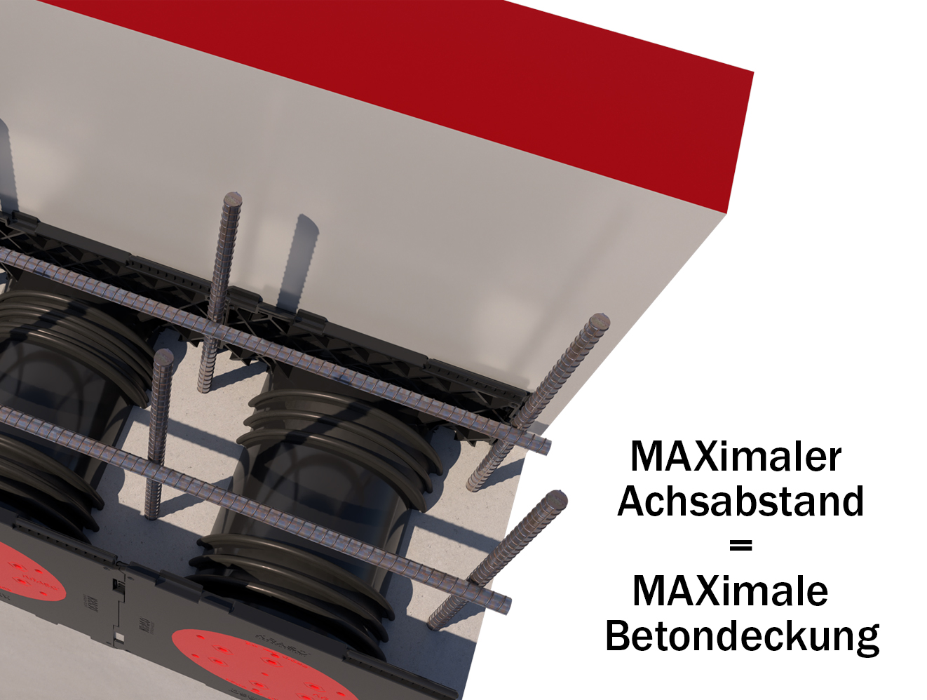 Mit der neu hinzugekommenen MAX-Variante der bewährten Kabeldurchführung kommen entscheidende Vorteile dazu: Ein strukturierter Spachtelflansch (Rahmengröße: 27 x 27 cm) ermöglicht eine optimale Anbindung an die Flächenabdichtung. Ein Achsabstand von 270 mm erlaubt die horizontale und vertikale Durchführung von Bewehrungsstahl mit ausreichend Abstand. So ist auch eine höhere Betondeckung möglich, zusätzliche Abstandhalter werden nicht benötigt.