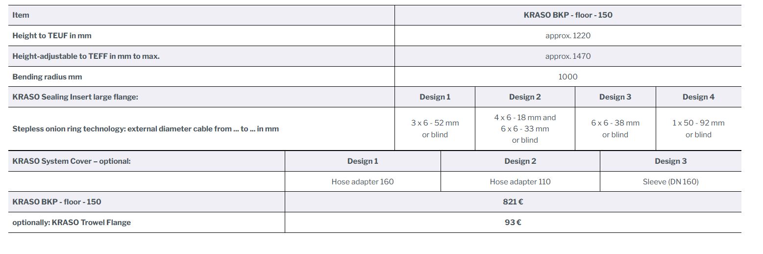 Das KRASO Bauherren-Komfortpaket - Boden - 150 ist eine Einsparten-Gebäudeeinführung für größere Versorgungsleitungen. Es wird in der Bodenplatte von nicht unterkellerten Gebäuden eingebaut und sorgt für eine sichere, druckwasserdichte Hauseinführung.