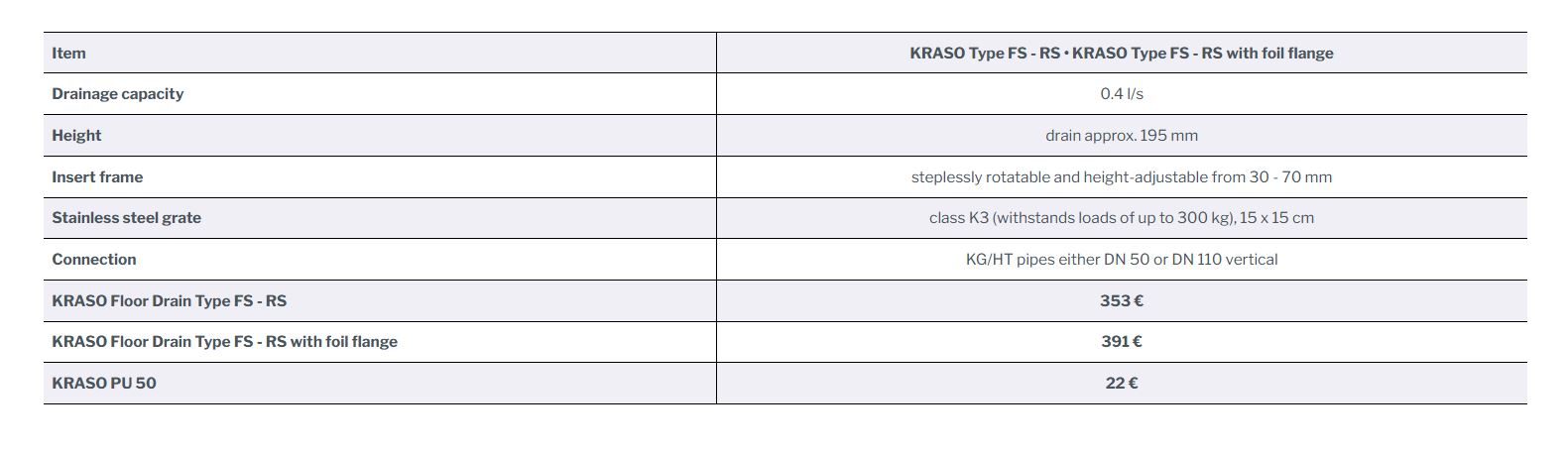 KRASO Floor Drain Type FS - RS - frost proof - backwater safe
