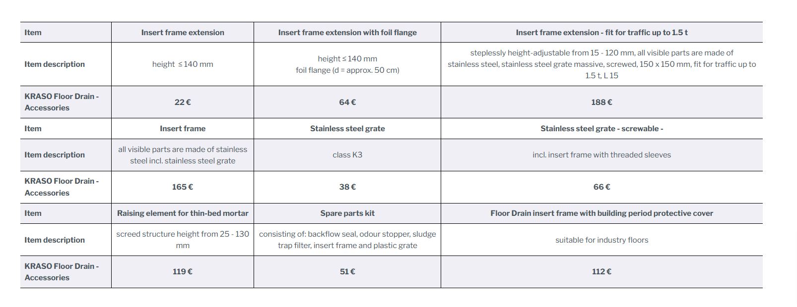 KRASO Floor Drains - Accessories