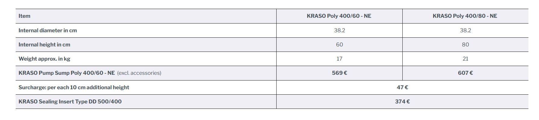 Welche Größen sind beim KRASO Pumpensumpf Poly 400 – NE erhältlich?