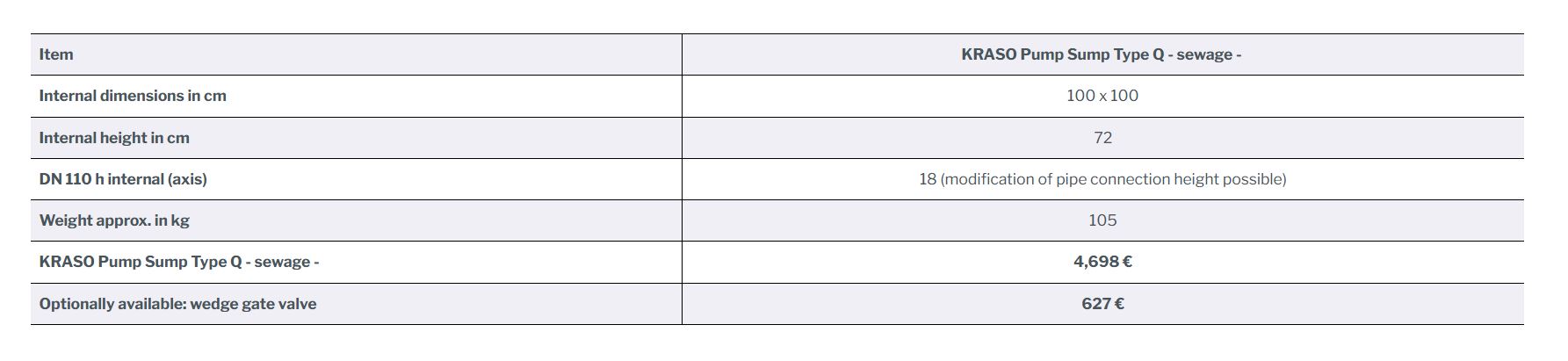 KRASO Pump Sump Type Q - sewage - |