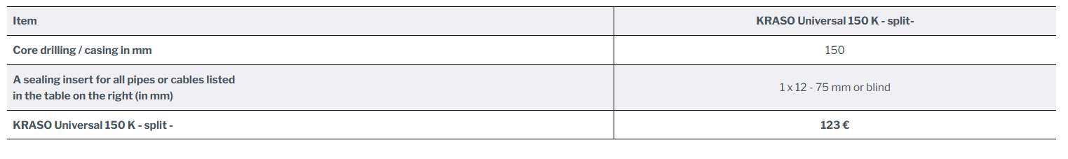 KRASO Sealing Insert Universal 150 K - split -
