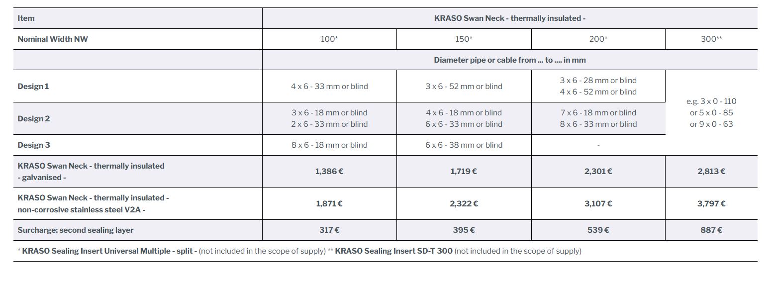 KRASO Swan Neck - thermally insulated -, EPDM seal, KRASO Foil Clamping Flange Type FKF, UV protection, fastening dowels M8 x 100 V2A, adhesive and sealant KRASO PU 50