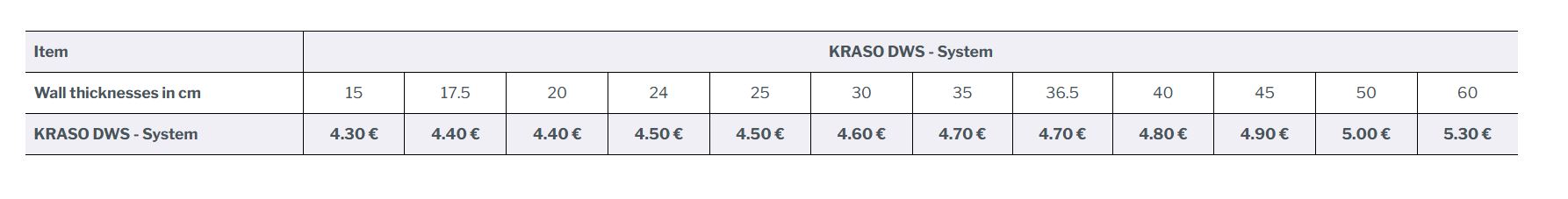 Welche Wandstärken sind mit dem KRASO DWS System möglich?