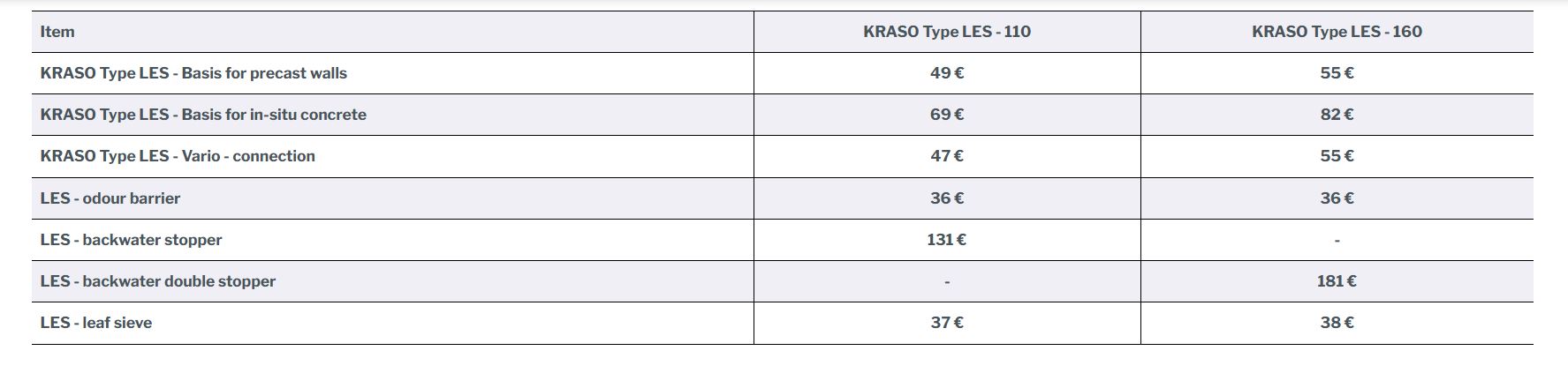 Welche Zubehörteile sind für den KRASO Typ LES erhältlich?
