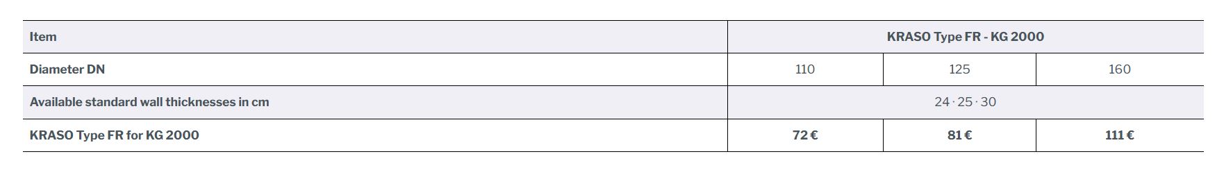 Die KRASO Wanddurchführung Typ FR für KG 2000 ist in den Durchmessern DN 110, DN 125 und DN 160 verfügbar.