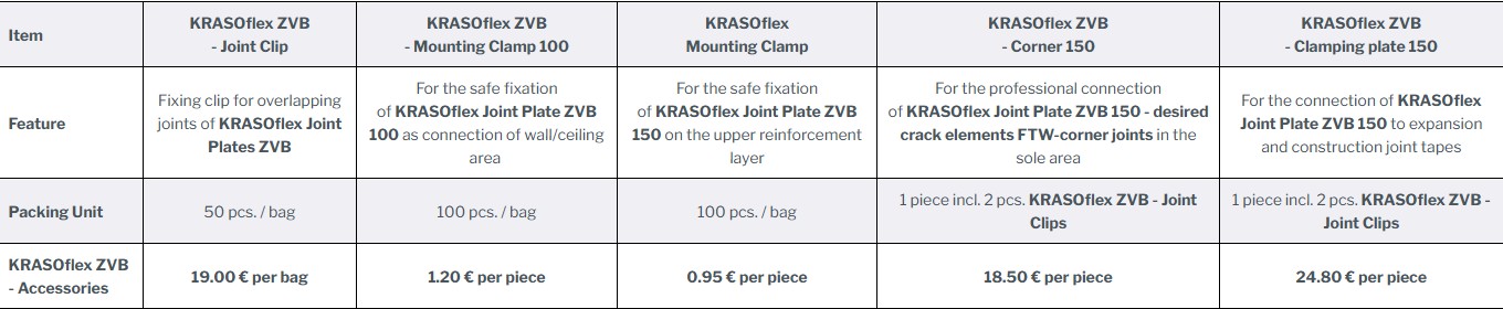 accessories for KRASOflex Joint Plate ZVB