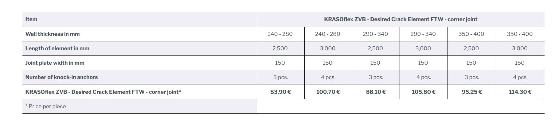 KRASOflex Joint Plate ZVB - Desired Crack Elements FTW (precast walls) - corner joint