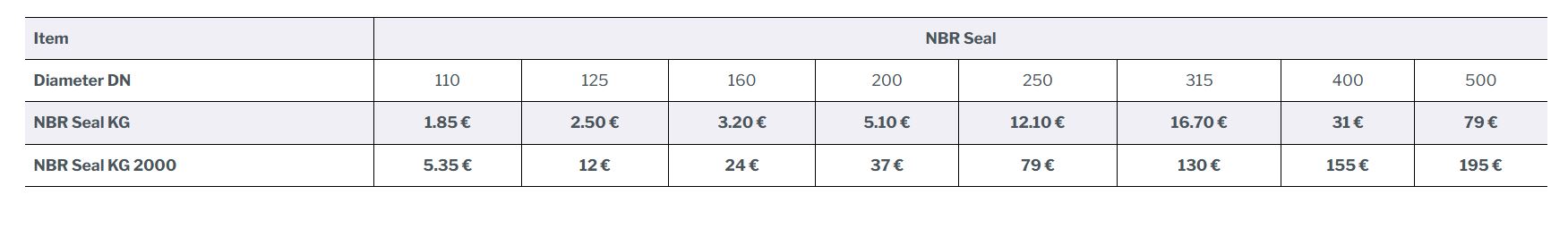 Always the right flow direction+ One flow direction!+ Flexible yet watertight connection to the pipe system: stresses caused by settling of KG pipes are minimised!+ KRASO 4 Seal - MPA-tested up to 10 bar!+ IAF-tested: radon-tight!+ Dimensionally and pressure-resistant solid material: low abrasion, easy installation at low temperatures+ In accordance with DIN EN 1401 (KG) or DIN EN 14758 (KG 2000)+ Also available for KG 2000: polypropylene (PP), mineral-filled, smooth walls, long-lasting+ DafStB waterproof concrete guideline: stress class 1 + 2