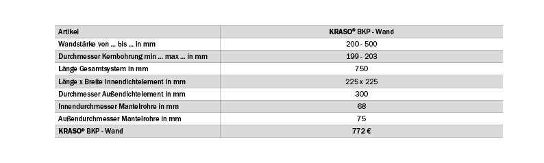 + Für Kernbohrung und Futterrohr DN 200 (199 - 203 mm). Für Fertigteilwände und Ortbetonwände!