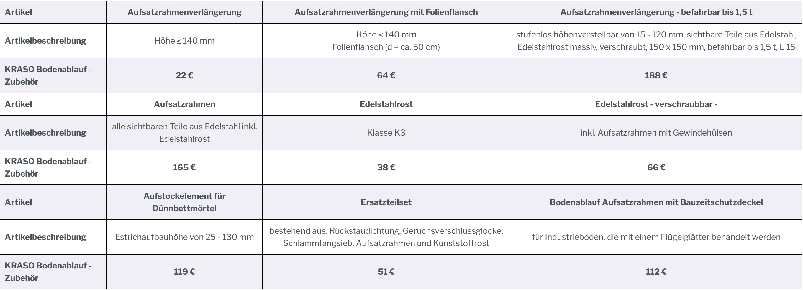 KRASO Bodenabläufe - Zubehör