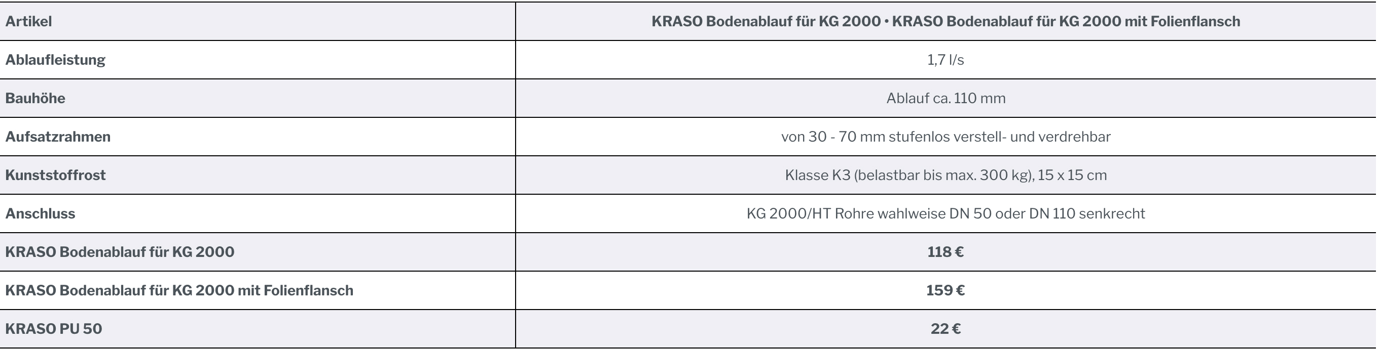 KRASO Bodenablauf für KG 2000 |