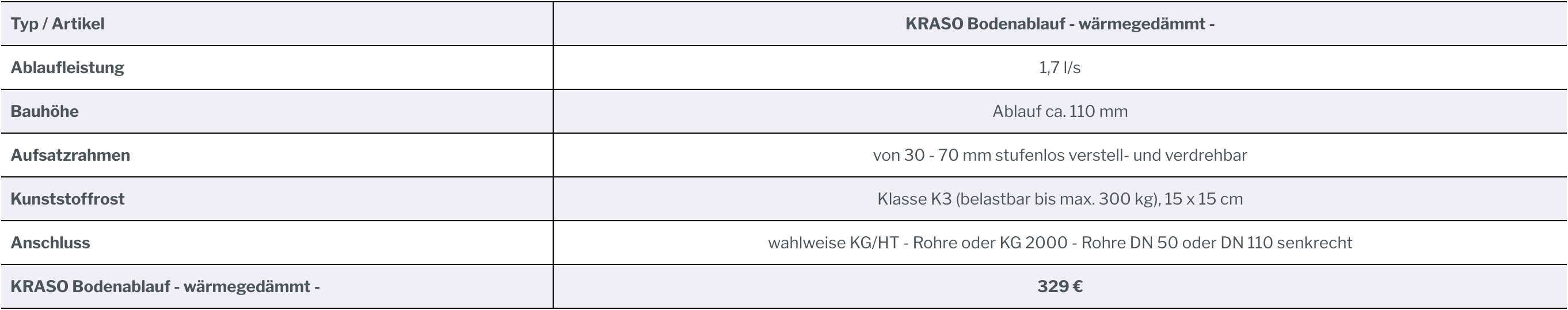 KRASO Bodenablauf - wärmegedämmt - |