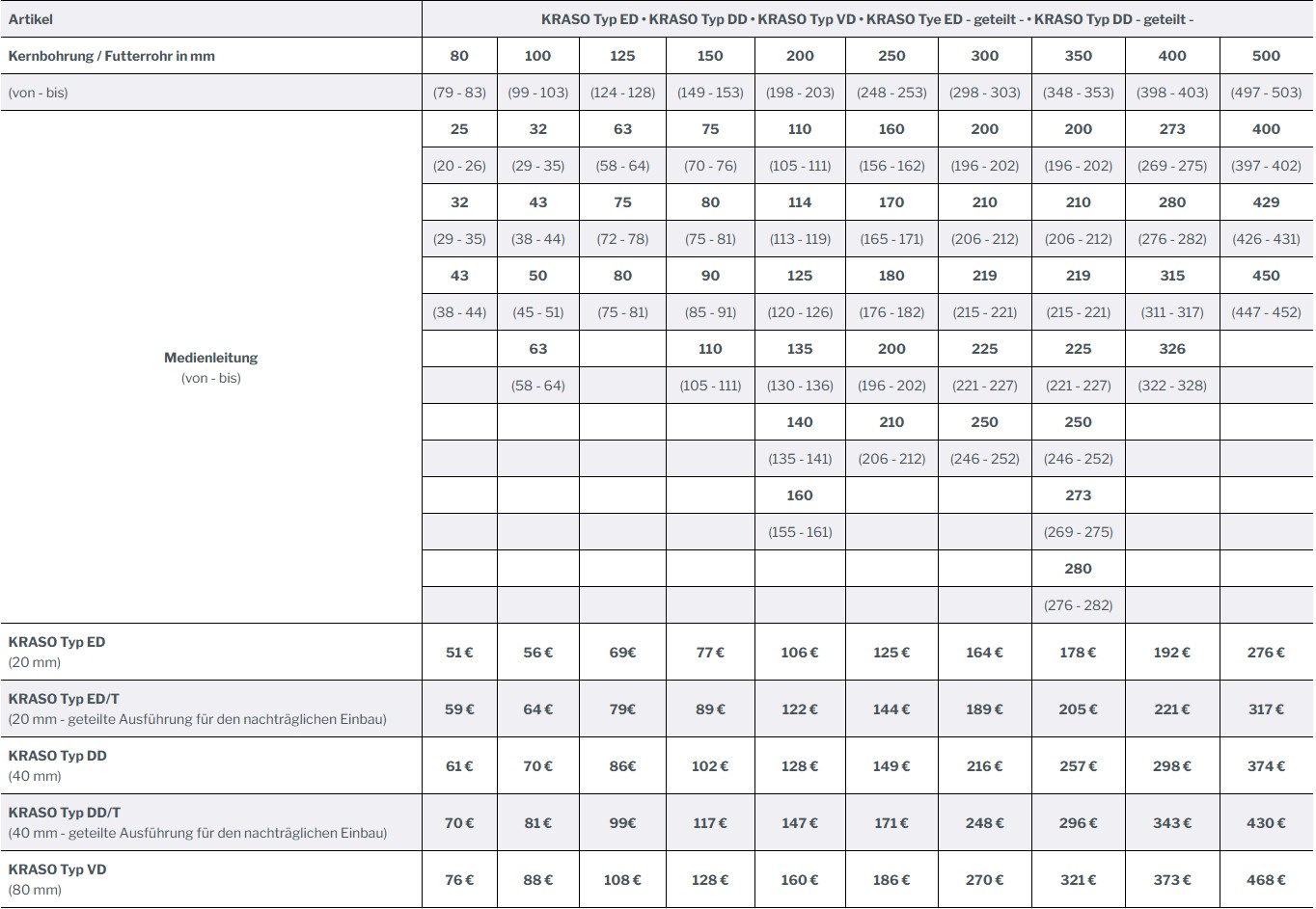 KRASO Typ DD/T (40 mm - geteilte Ausführung für den nachträglichen Einbau) | 70 € |