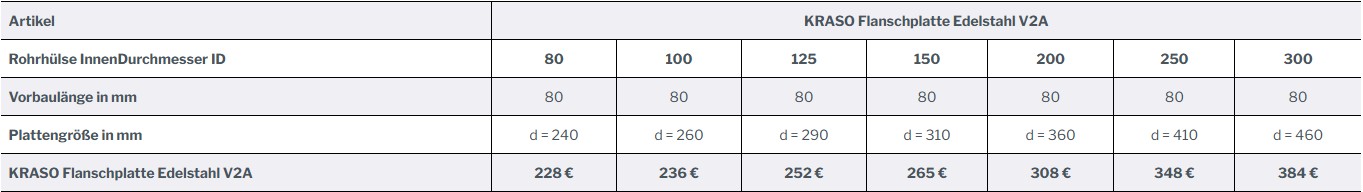 KRASO Flanschplatte Edelstahl V2A, mit angeschweißter Edelstahlrohrhülse, EPDM Flachdichtung inkl. Befestigungsmaterial und Kleb- und Dichtstoff KRASO PU 50
