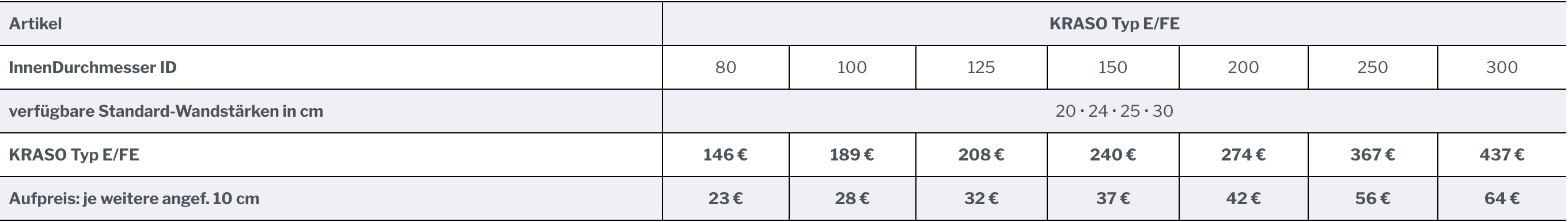 KRASO Futterrohr Typ FBV-FE - Futterrohr Echtmaß