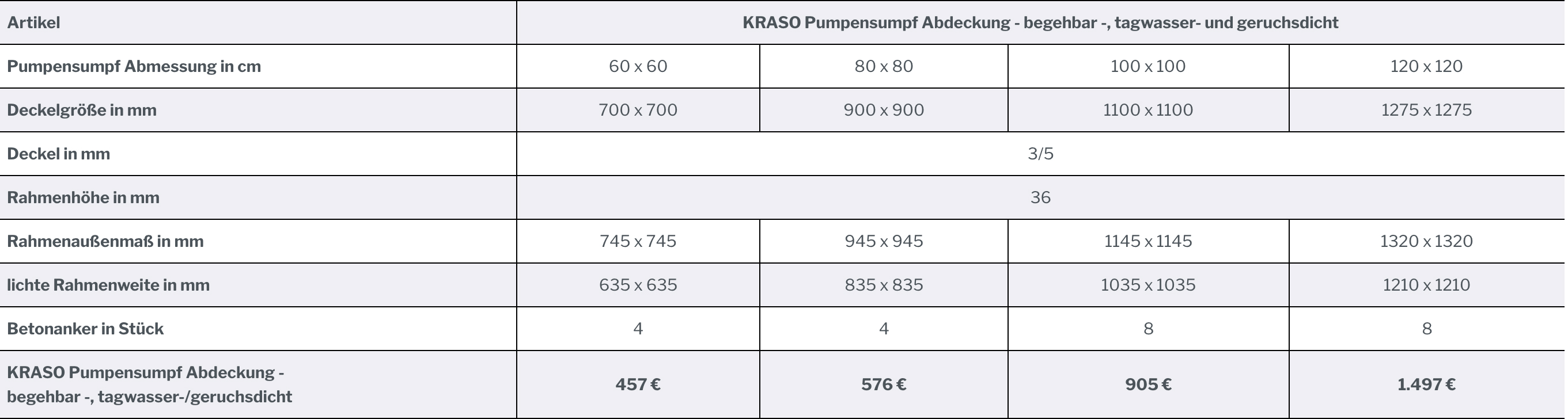 KRASO Pumpensumpf Abdeckung - begehbar -, tagwasser- und geruchsdicht |