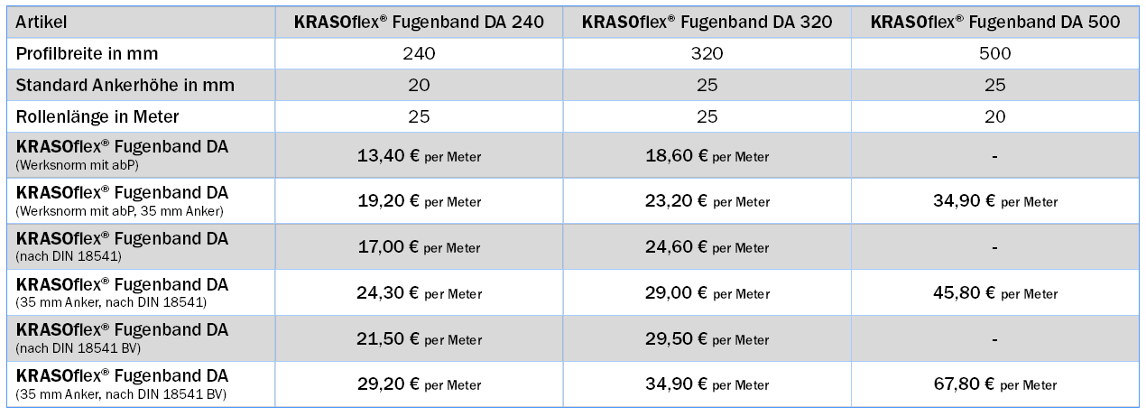 KRASOflex Fugenband DA (Werksnorm mit abP) |