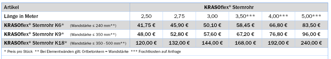 KRASOflex Sternrohr K18* (Wandstärke ≤ 350 - 500 mm**) |